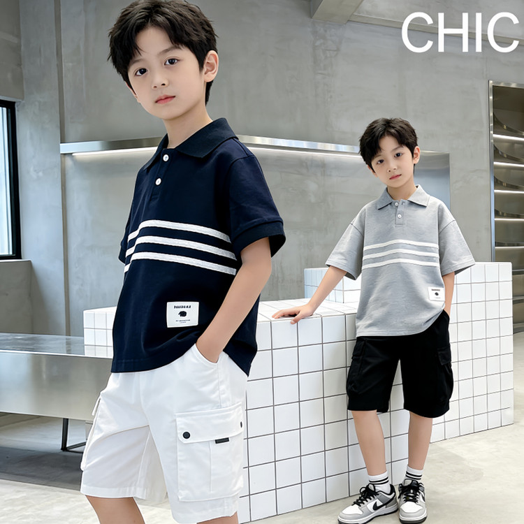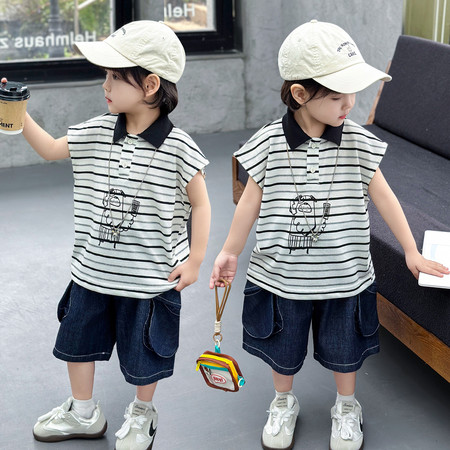 小萌娃童装&条纹polo衫无袖套装