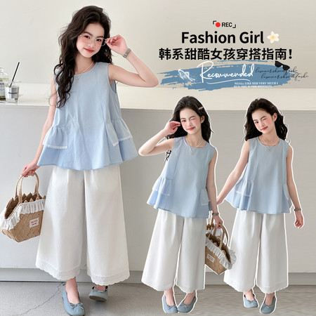 星梦圆&X02款棉布无袖点点9分裤套装